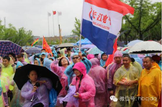 臨近開賽,一場暴風(fēng)驟雨襲來,但是風(fēng)雨無情人有情,“長江電氣”的大旗仍頑強(qiáng)地飄揚(yáng)在運(yùn)動場上空,這代表著長江電氣“追求卓越、成就夢想”的工作理念。在經(jīng)過一番充分的熱身運(yùn)動后,長江電氣21人“健身徒步天團(tuán)”迅速地匯入到浩浩蕩蕩的參賽隊(duì)伍之中,等待他們的不僅僅是全程六公里的行進(jìn)與考驗(yàn),也是陣陣狂風(fēng)暴雨的洗禮與歷練。
