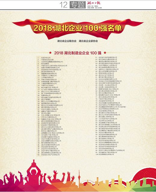 △2018湖北制造業(yè)企業(yè)百強名單