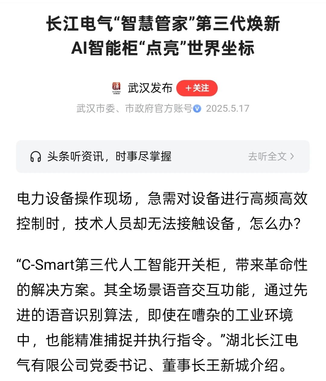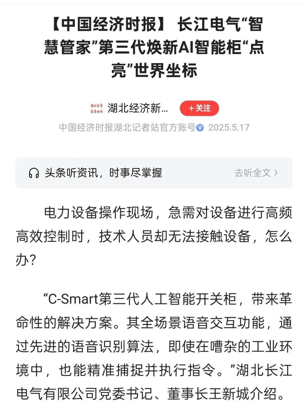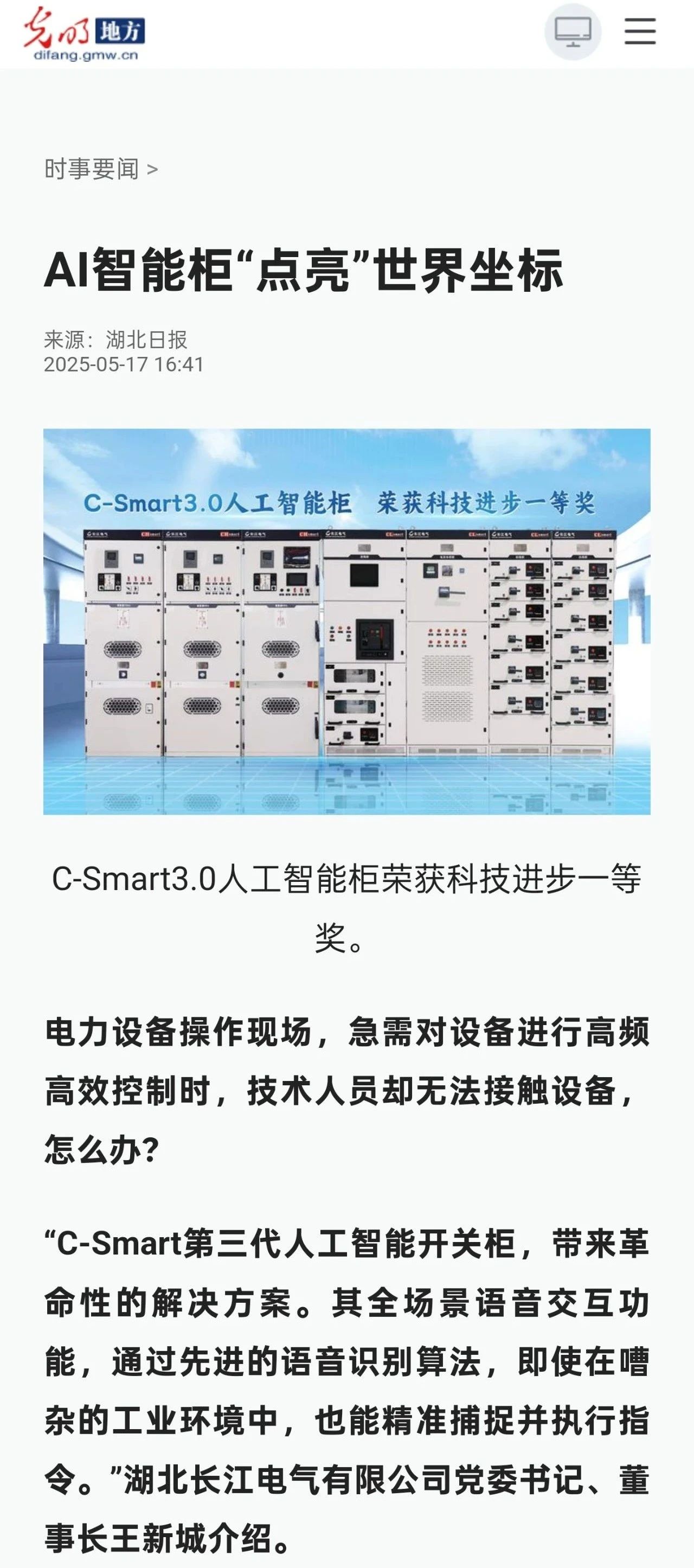 媒體聚焦|C-Smart第三代人工智能開關柜重磅發布獲多家媒體關注