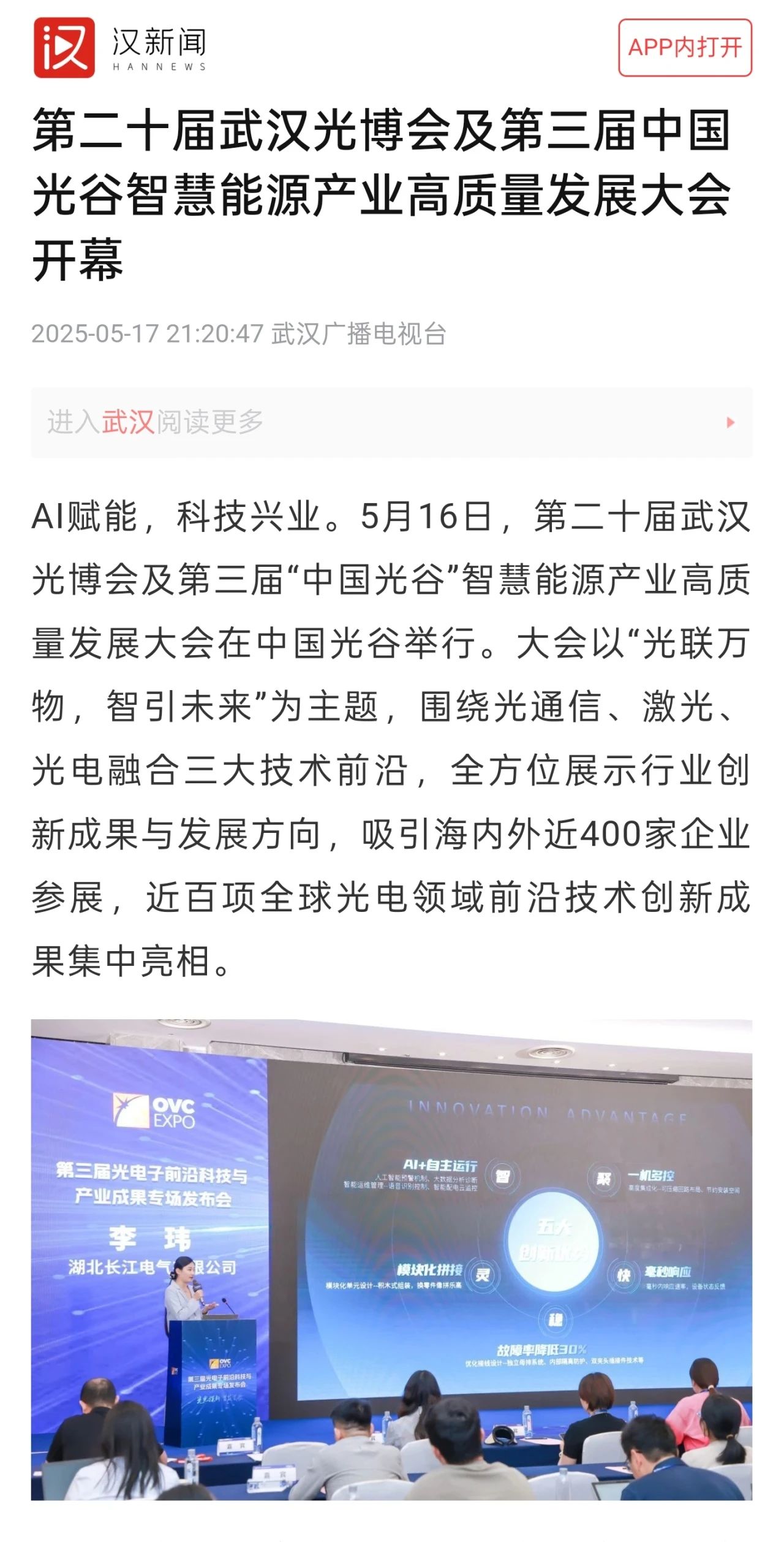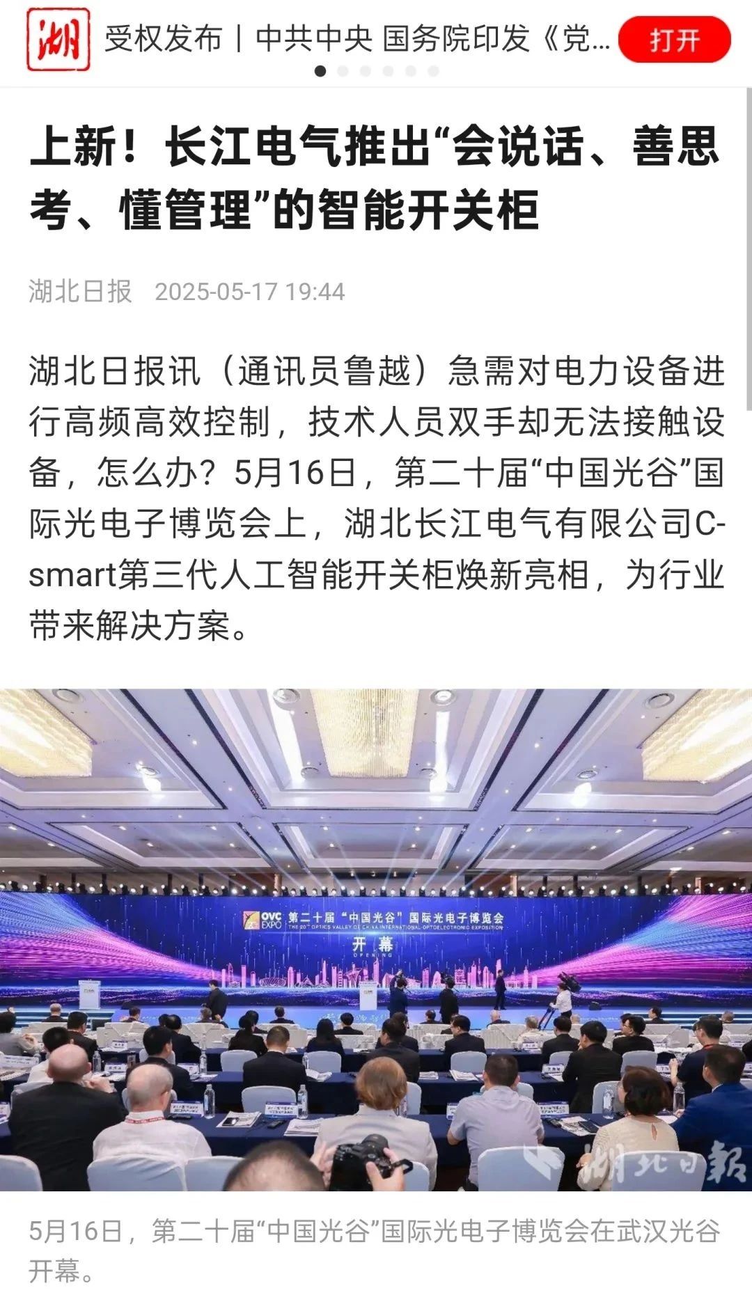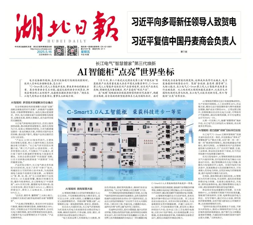 5月16日,第二十屆武漢光博會及第三屆“中國光谷”智慧能源產業高質量發展大會在中國光谷隆重舉行,C-Smart第三代人工智能開關柜系列產品重磅發布,得到社會各界廣泛關注,并獲多家媒體聚焦報道。