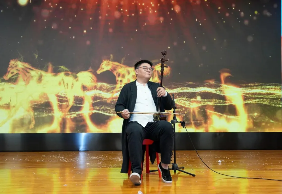 二胡獨奏《戰(zhàn)馬奔騰》氣勢如虹、大氣磅礴,表現(xiàn)了祖國邊疆騎兵戰(zhàn)士的英勇與頑強,贏得了現(xiàn)場陣陣掌聲。