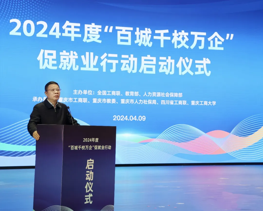 全國工商聯副主席方光華出席啟動儀式并講話,重慶市委常委、統戰部部長盧紅出席并致辭,教育部高校學生司(高校畢業生就業服務司)副司長王巖、人力資源和社會保障部就業促進司副司長李汶娟出席并講話,重慶工商大學黨委書記曾維倫,重慶市委統戰部常務副部長、市工商聯黨組書記張洪斌,四川省工商聯黨組成員、副主席孫寧,重慶市工商聯黨組成員、副主席雷文睿,全國工商聯人才交流服務中心主任李樹林出席。全國工商聯社會服務部副部長陸紅軍主持啟動儀式。