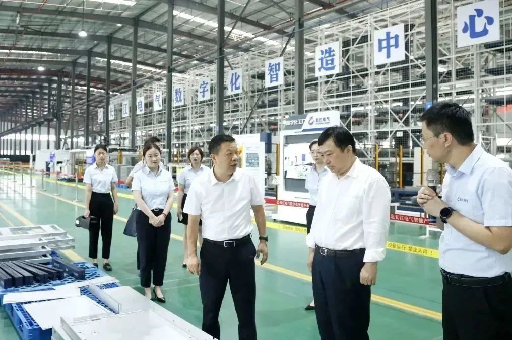 揭建平一行參觀長江電氣數(shù)字化展廳,深入紅色智造車間及數(shù)字化智造一線,詳細了解企業(yè)生產經營、重大項目、產品研發(fā)、產業(yè)布局等情況。